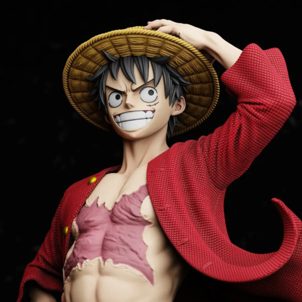 ⭐️ جزئیات فوقالعاده: طراحی دقیق با الهام از شخصیت لوفی در انیمه، همراه با لباس کلاسیک او (کت قرمز، شلوارک آبی و کمربند زرد)