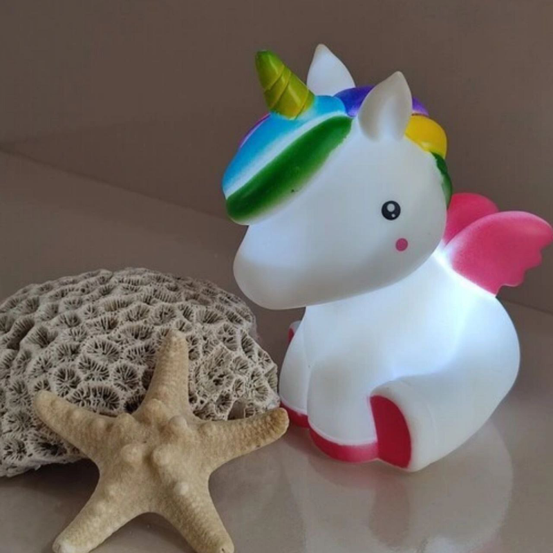 چراغ خواب فانتزی مدل اسب تک شاخ ( یونیکورن)  از جنس pvc فشرده تولید شده و دارای کیفیت بسیار بالا است . این چراغ خواب باطری خور است و با سه عدد باطری گرد ساعتی کار می کند .